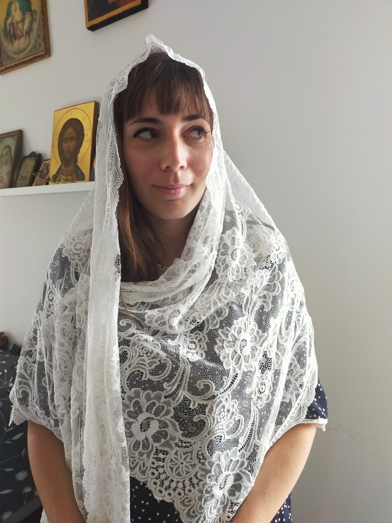 Il velo muliebre è una pia pratica, riservata alle donne, per vivere con umiltà e modestia la partecipazione alla santa Messa. Dopo il Concilio Vaticano II è purtroppo caduto in disuso nella maggioranza delle parrocchie…sebbene la norma sia effettivamente ancora valida.