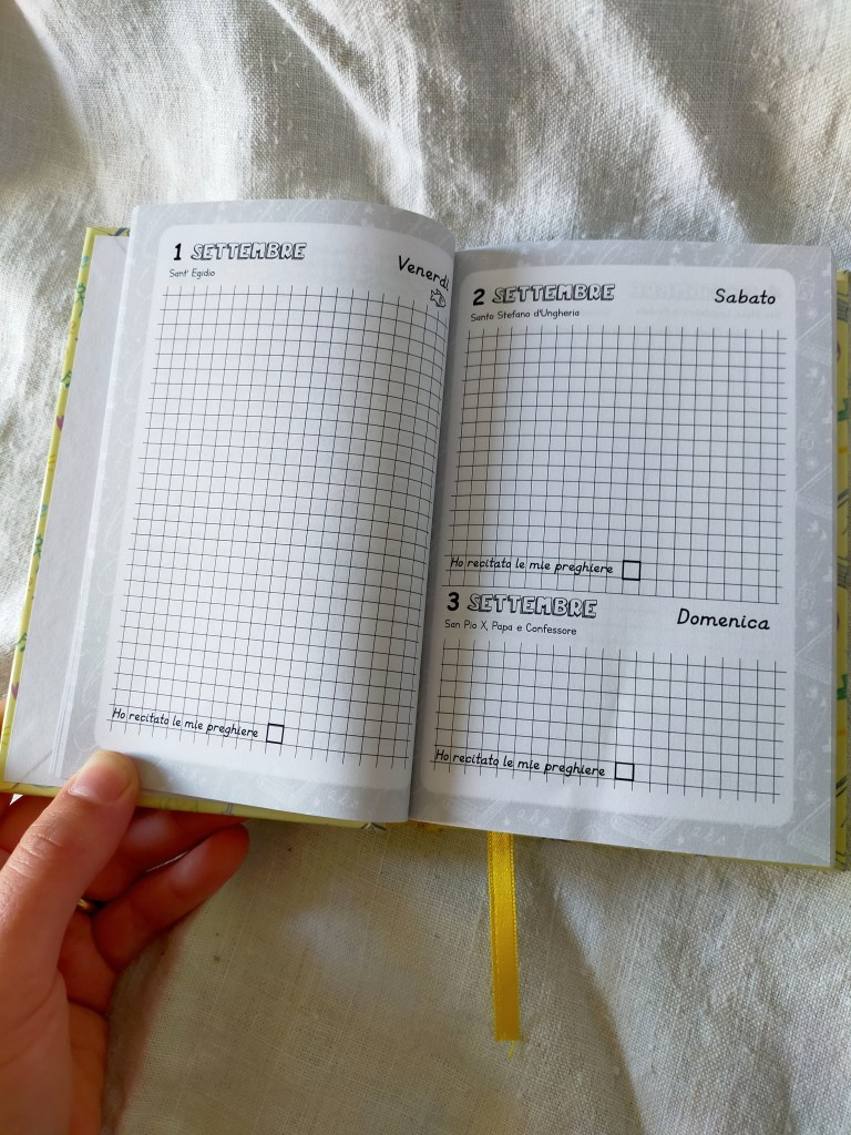 Già da due anni (e questo è il terzo, perchè siamo già al lavoro per il 2024!) io e l’Illustratrice Rosanna realizziamo l’unica agenda cattolica tradizionale in Italia. Anno dopo anno questo progetto cresce sempre più. Fin da subito ci è stato chiesto innumerevoli volte di realizzare un’agenda giornaliera, e un diario scolastico affinchè anche i più piccoli potessero avere uno strumento cattolico a guidare le loro giornate, un segno tangibile che la Fede permea ogni aspetto della vita, scuola compresa. E vi abbiamo ascoltati.