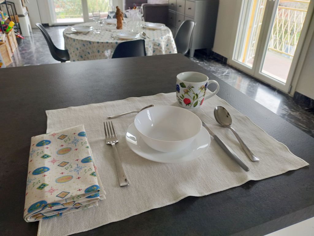 Ho pensato anche a una soluzione più informale per la vostra colazione, e ovviamente più economica. Se siete amanti delle tovagliette da colazione, non potrete non amare queste. Abbiamo due versioni, entrambe di misura 40×50 cm, ed entrambe del costo di 12€.