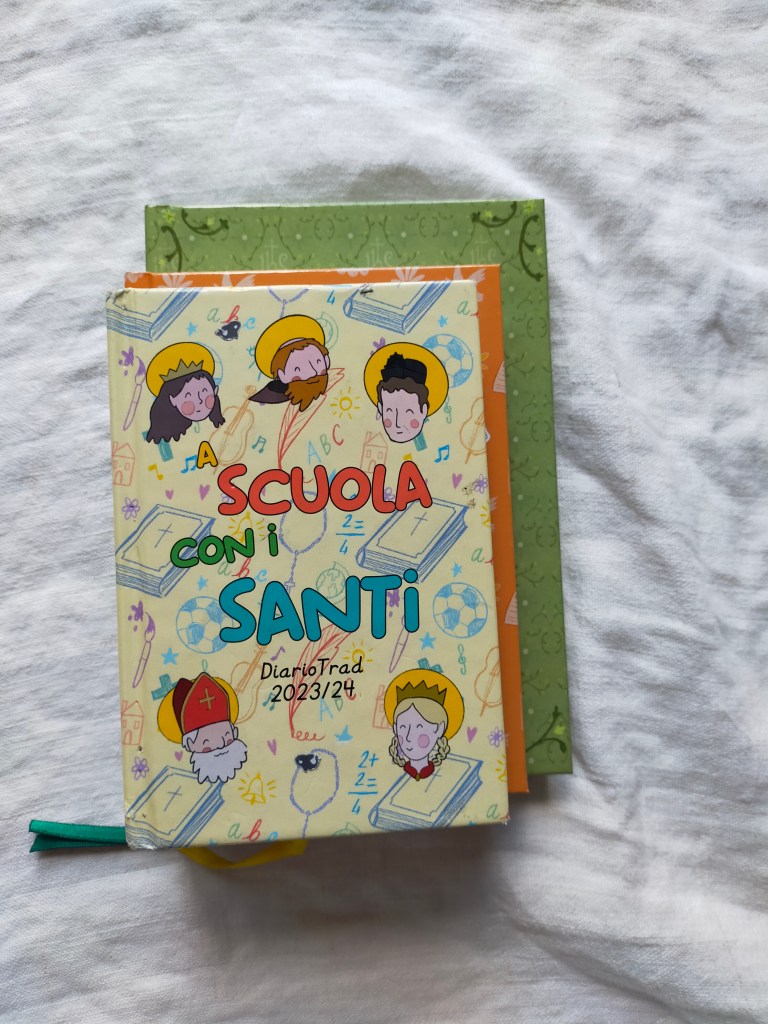Già da tre anni (e questo è il quarto, perchè siamo già al lavoro per il 2025!) io e l’Illustratrice Rosanna realizziamo l’unica agenda cattolica tradizionale in Italia. Anno dopo anno questo progetto cresce sempre più. Fin da subito ci è stato chiesto innumerevoli volte di realizzare un’agenda giornaliera, e un diario scolastico affinchè anche i più piccoli potessero avere uno strumento cattolico a guidare le loro giornate, un segno tangibile che la Fede permea ogni aspetto della vita, scuola compresa. L’anno scorso è nato quindi il diario, ed è subito stato un successone.
