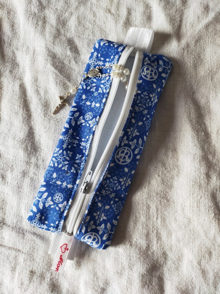 Ho pensato che questo giorno fosse perfetto per presentarvi l’ultimo velo della collezione in edizione limitata, di colore grigio. Tra l’altro, la fantasia è la medesima del primo velo della collezione, il blu Regina Sacratissimi Rosarii. Il cerchio si chiude.