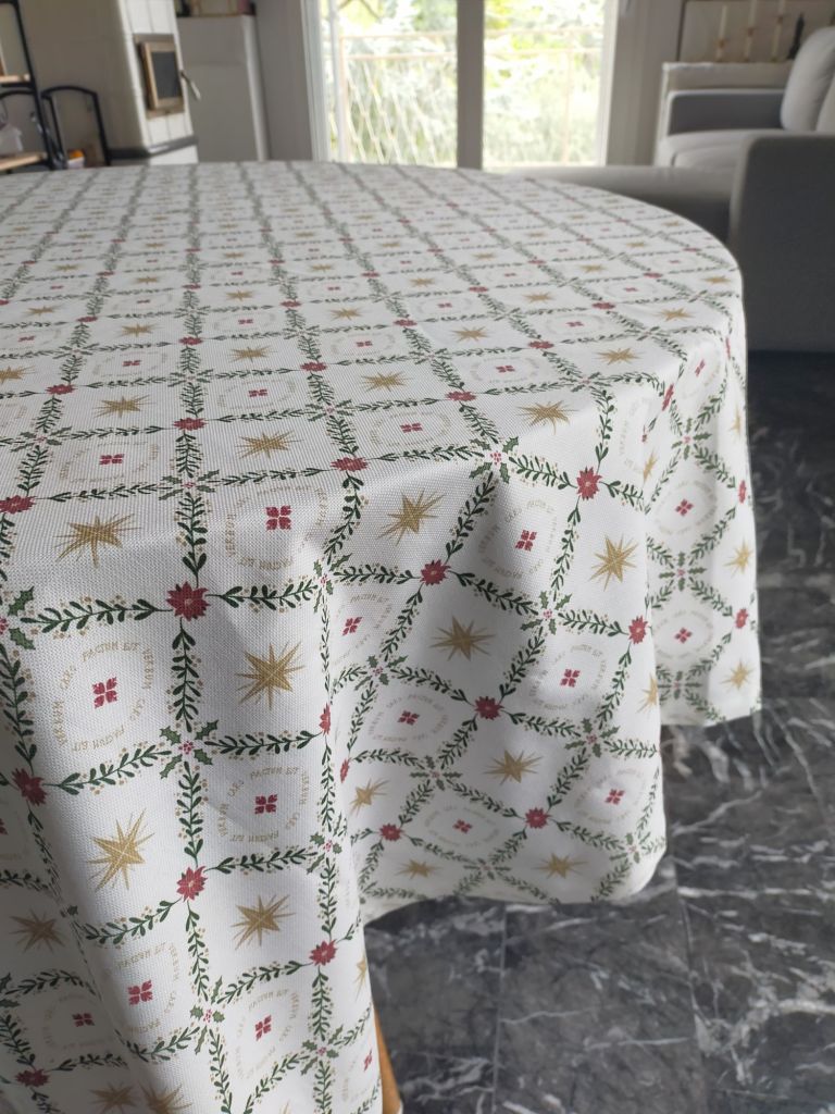 Meglio ancora sarebbe partire dalla dimensione del tavolo, così da calcolare di quanto far cadere la tovaglia oltre il bordo. Il risultato visivamente migliore e tendenzialmente preferito è quello in cui sia dai lati corti che da quelli lunghi la tovaglia sporga in modo uguale, ad esempio di 35 cm per lato per chi ama le tovaglie abbondanti (ma appunto è una questione di gusto personale). Per un preventivo sulla tovaglia finale contattatemi scrivendo le misure del tavolo.