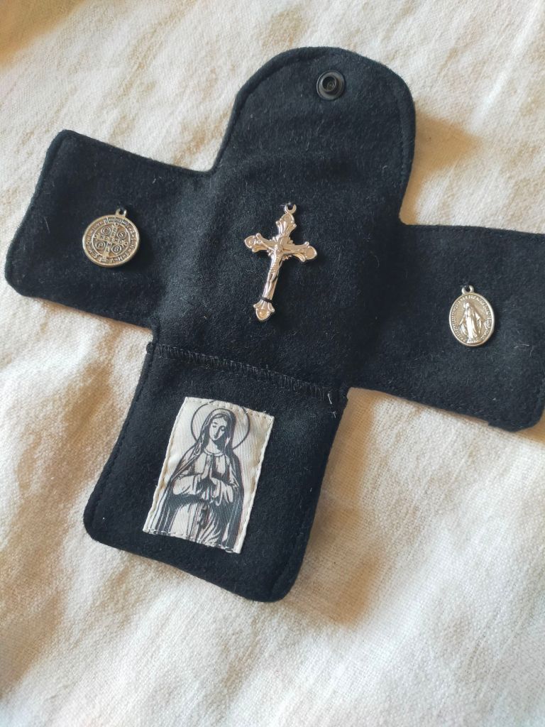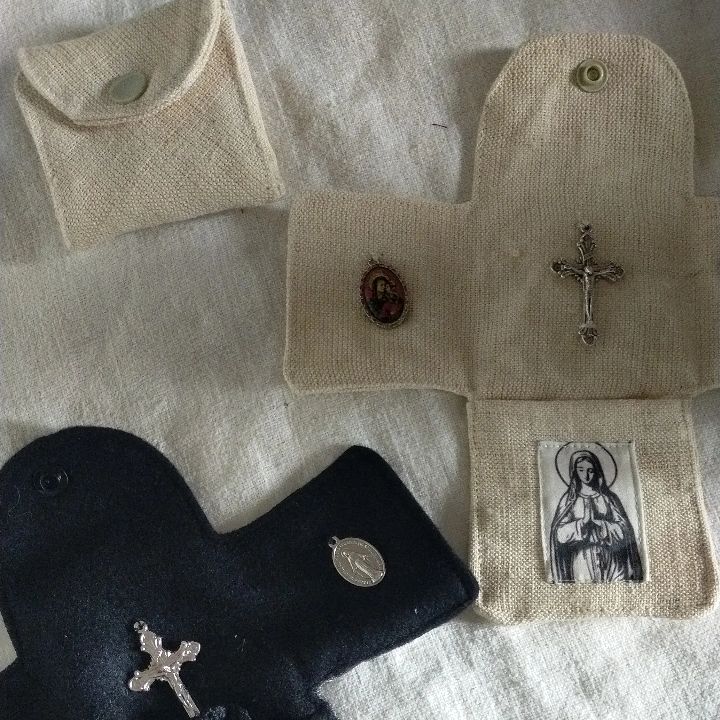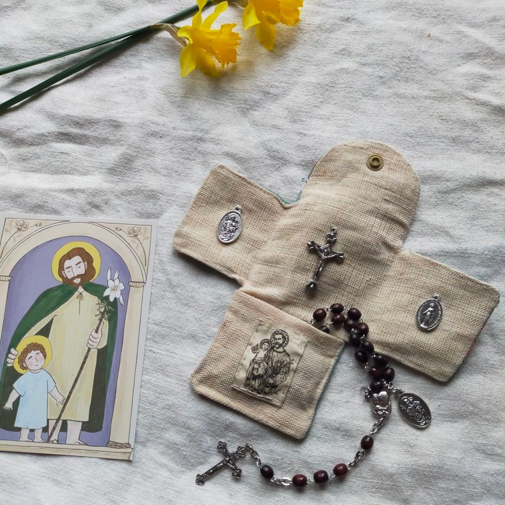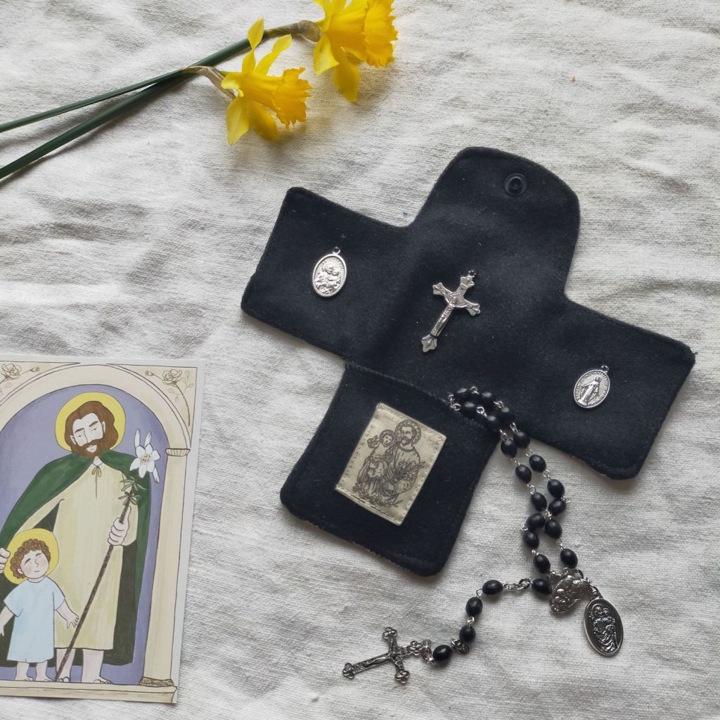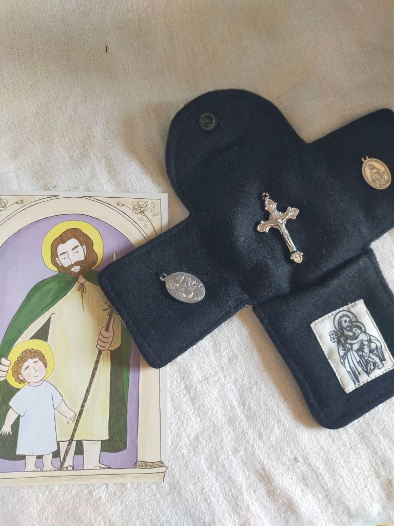 Dopo il velo Cor Jesu e Cor Matris , ancora disponibili, ho pensato di proporvi un velo, sempre ricamato e colorato, in onore del Sacro Cuore di san Giuseppe.