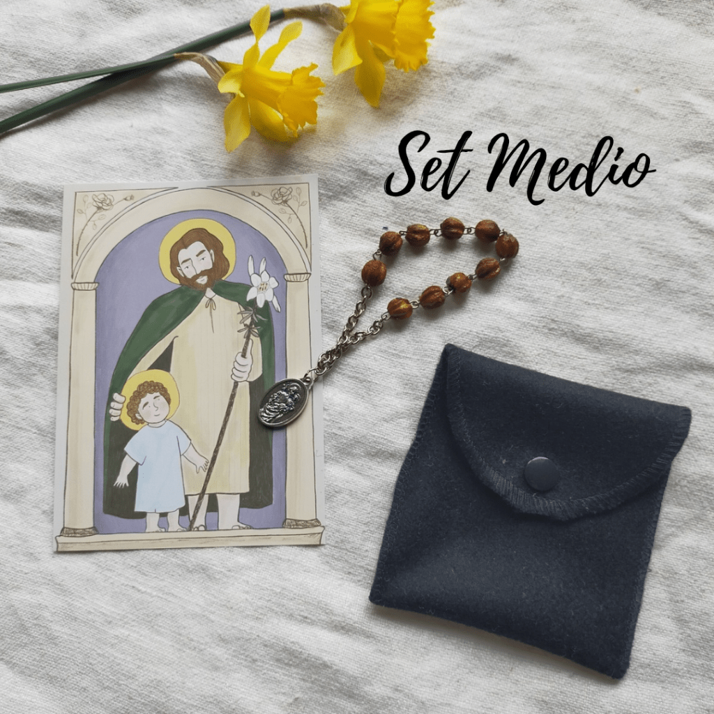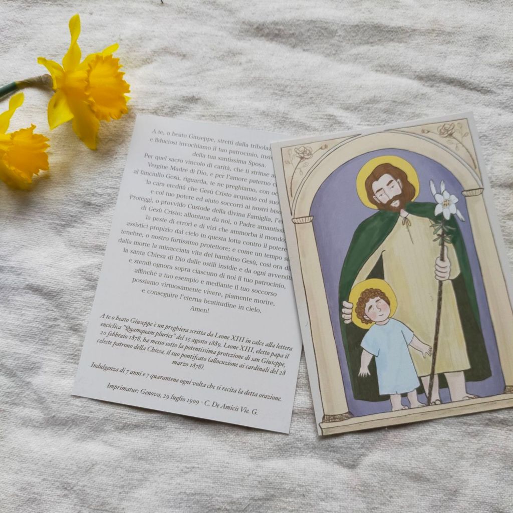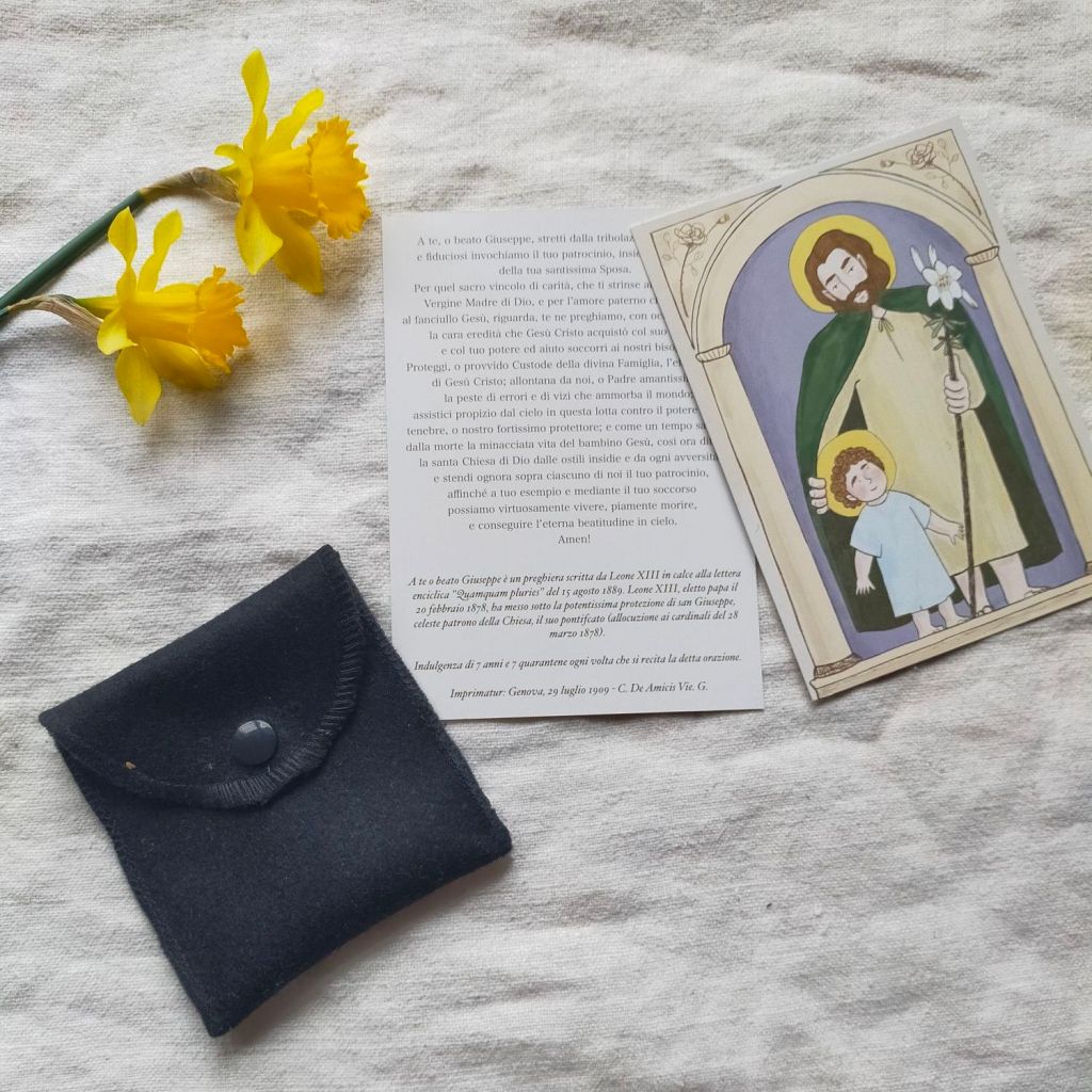 Per, quel sacro vincolo di carità, che ti strinse all’Immacolata Vergine Maria, Madre di Dio, e per l’amore paterno che portasti al fanciullo Gesù, riguarda, te ne preghiamo, con occhio benigno la cara eredità che Gesù Cristo acquistò col suo sangue e col tuo potere ed aiuto sovvieni ai nostri bisogni.