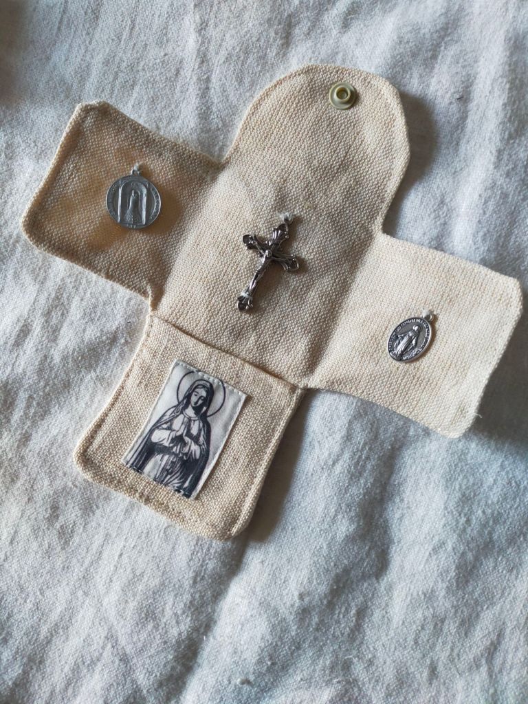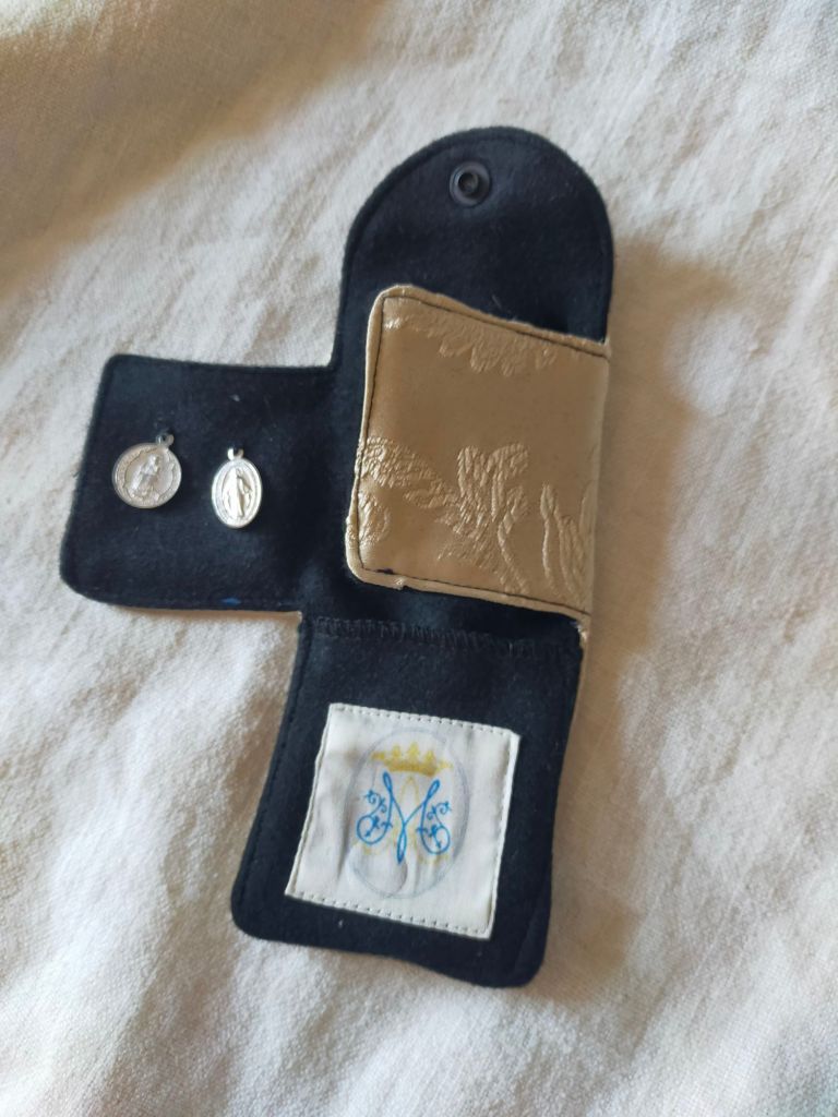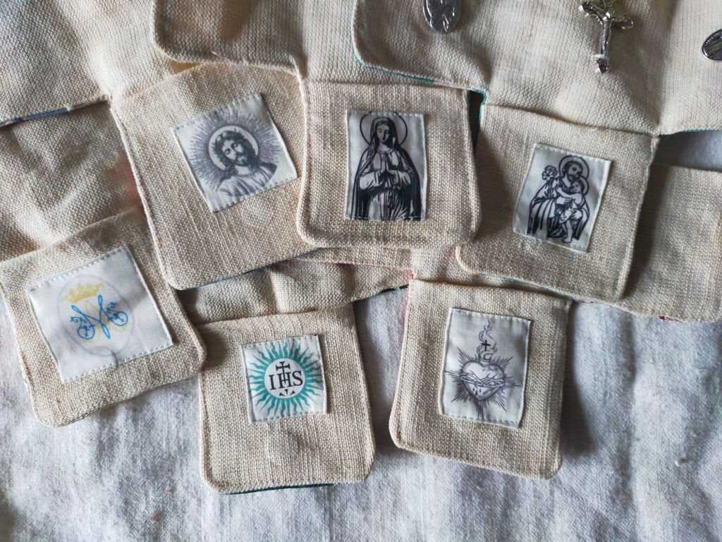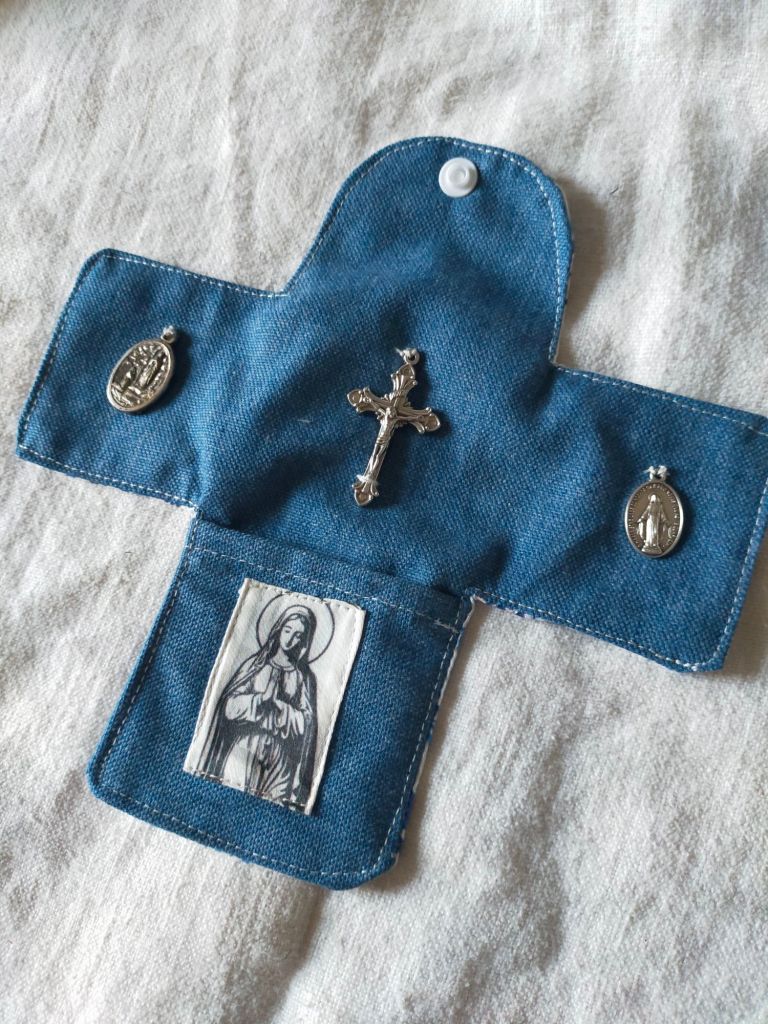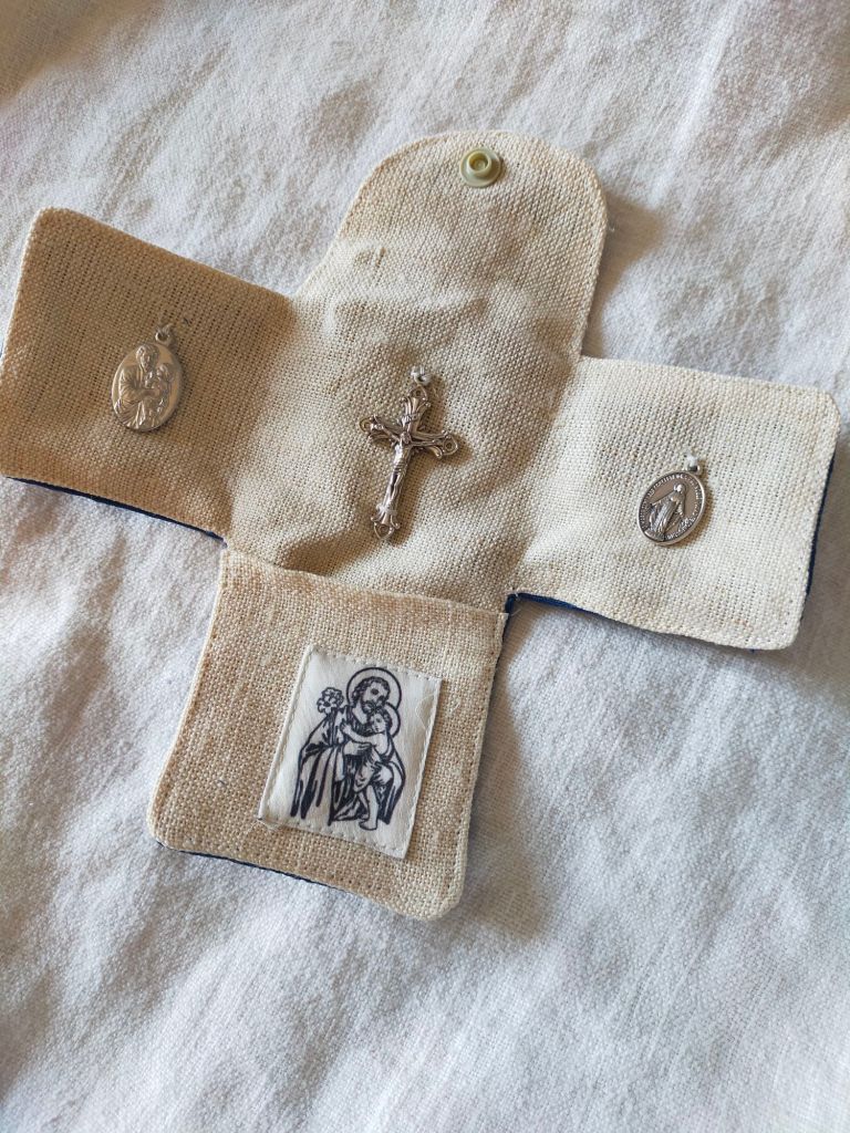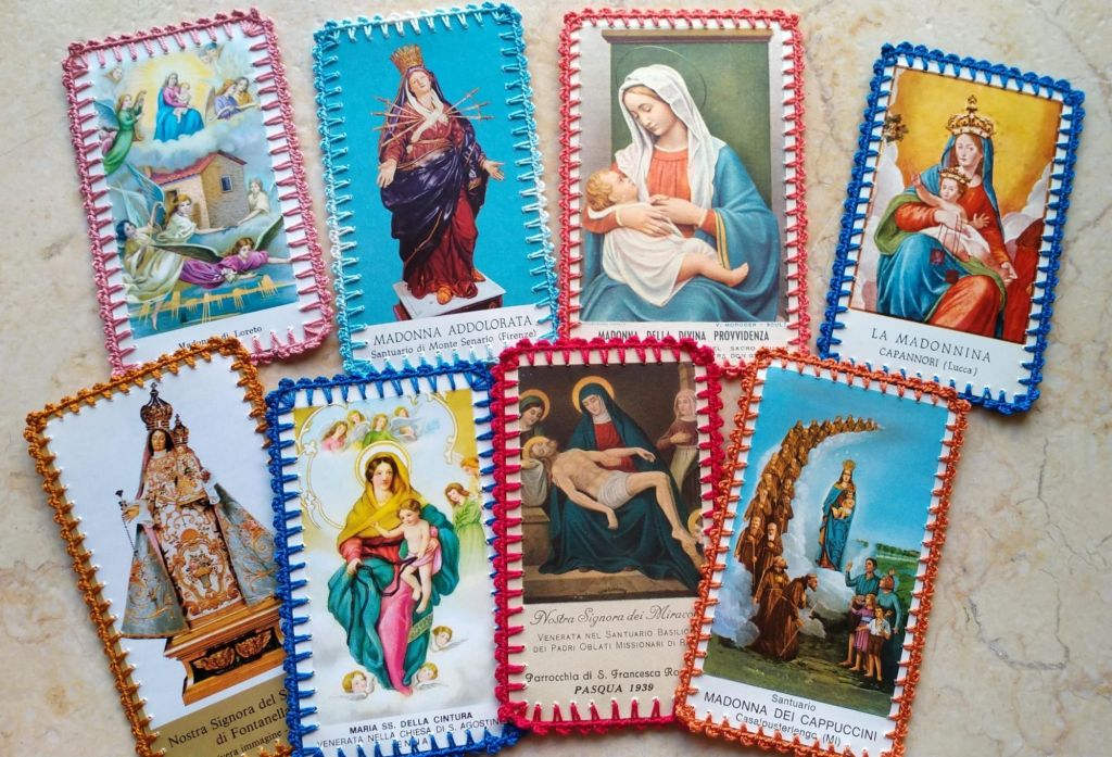 Ho voluto aggiungere, nei modelli triangolari, una piccola medaglia di san Giuseppe. Per ogni modello, è possibile scegliere tra il bordo bianco o rosa: