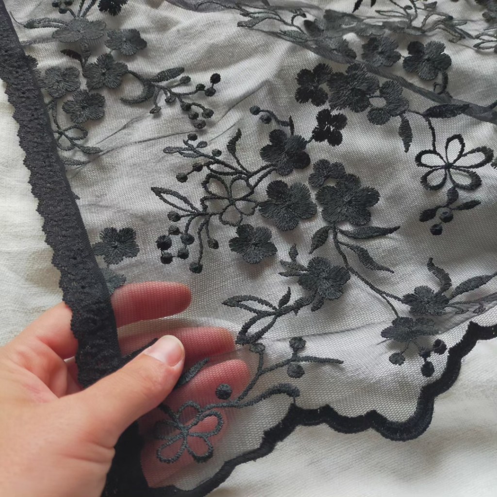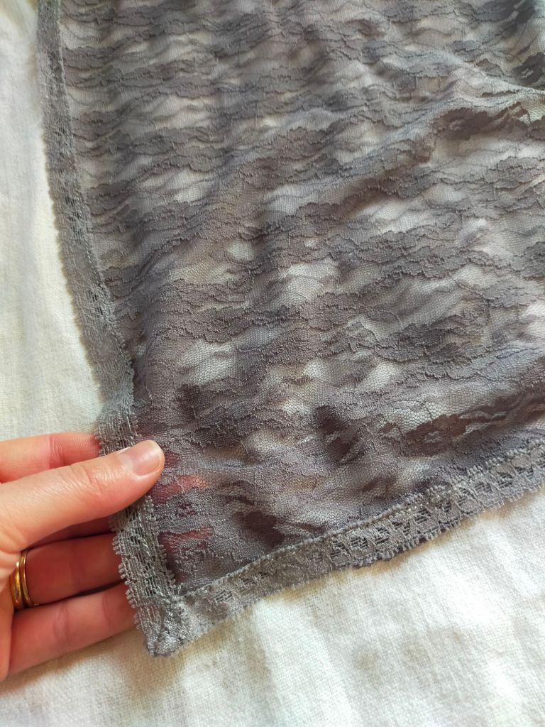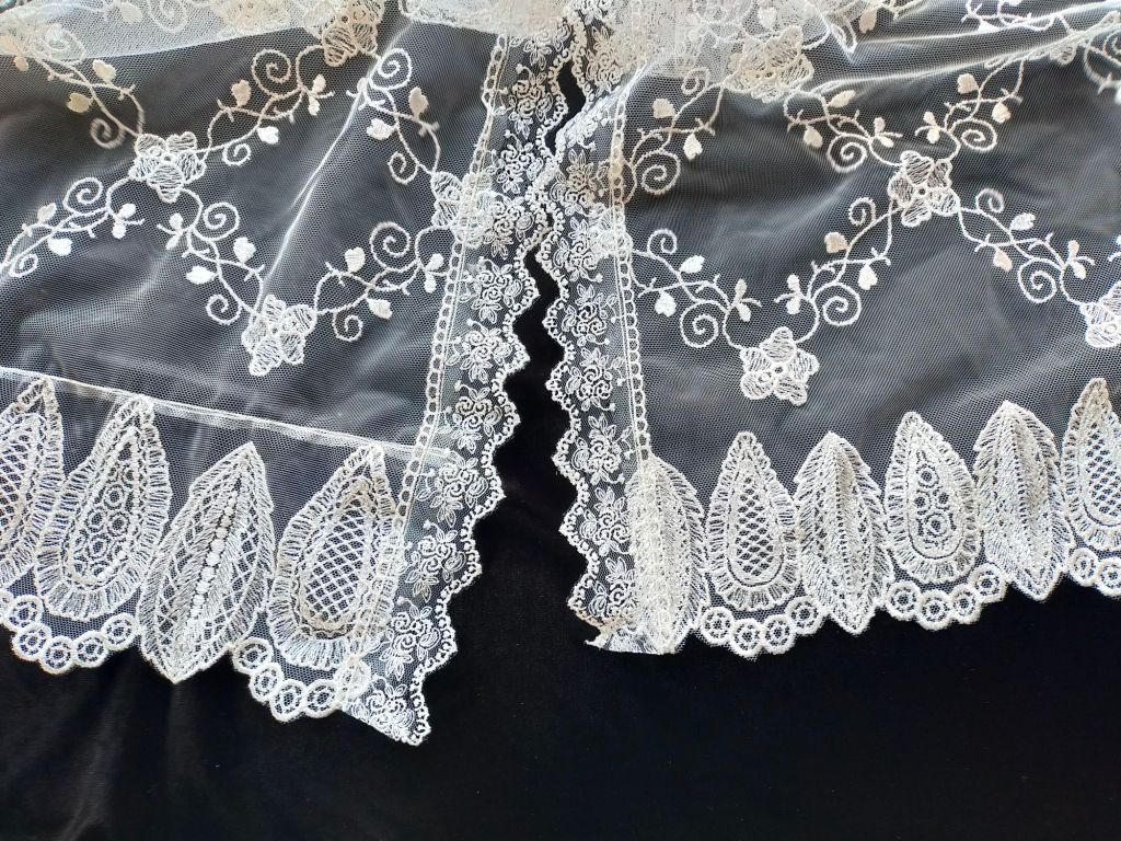 Questa stoffa non ha una sua cimosa, quindi tutti i bordi di tutti i modelli sono rifiniti con il bordo di pizzo.