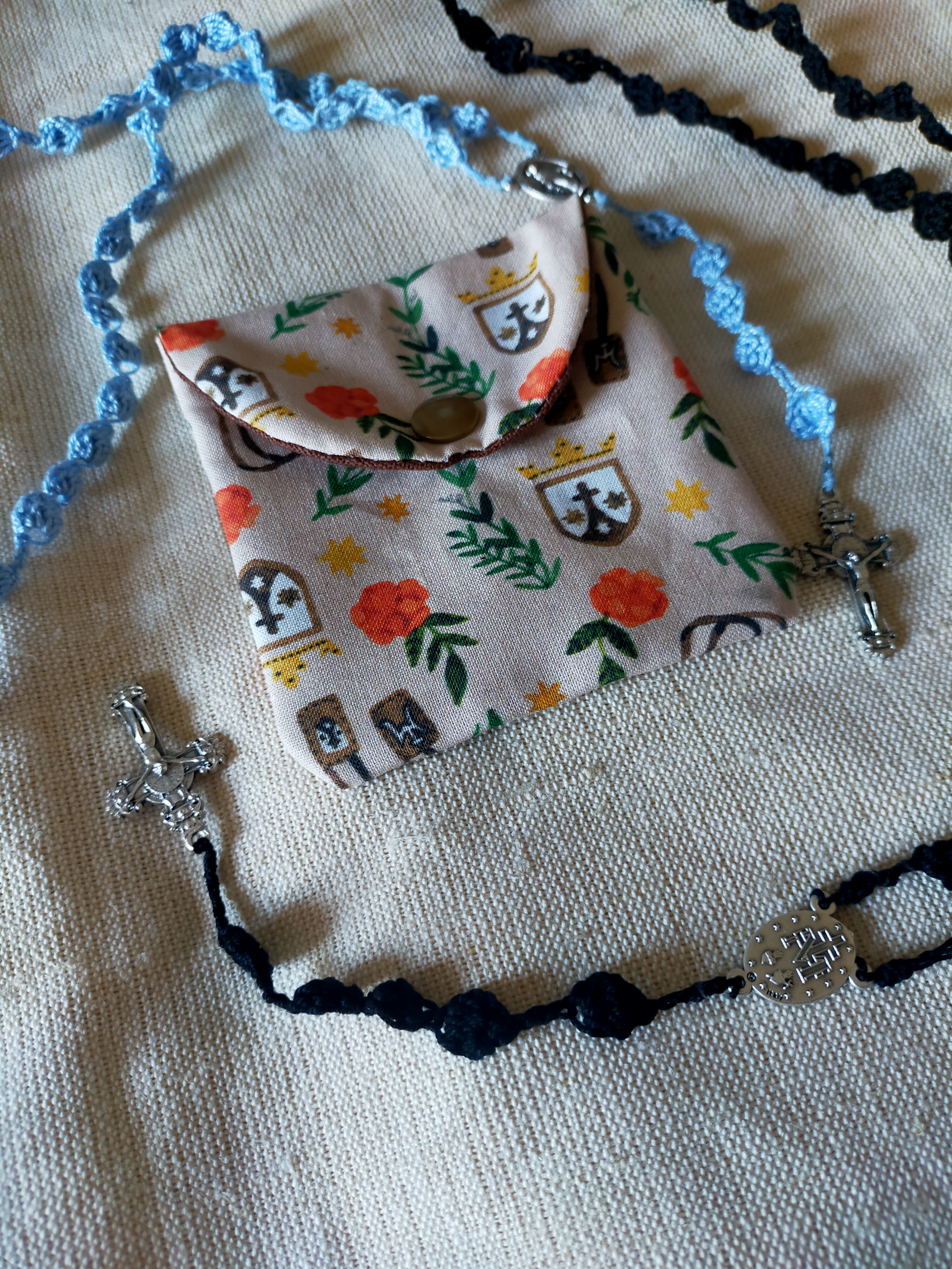 Da molto tempo produco rosari, e cerco di diffondere questa pia pratica. Ma uno dei problemi più comuni (soprattutto da quando sono mamma e la mia borsa esplode di ciarpame) è proteggere la corona stessa, e non perderla in borsa. Ecco perchè ho deciso di realizzare delle piccole custodie apposite.